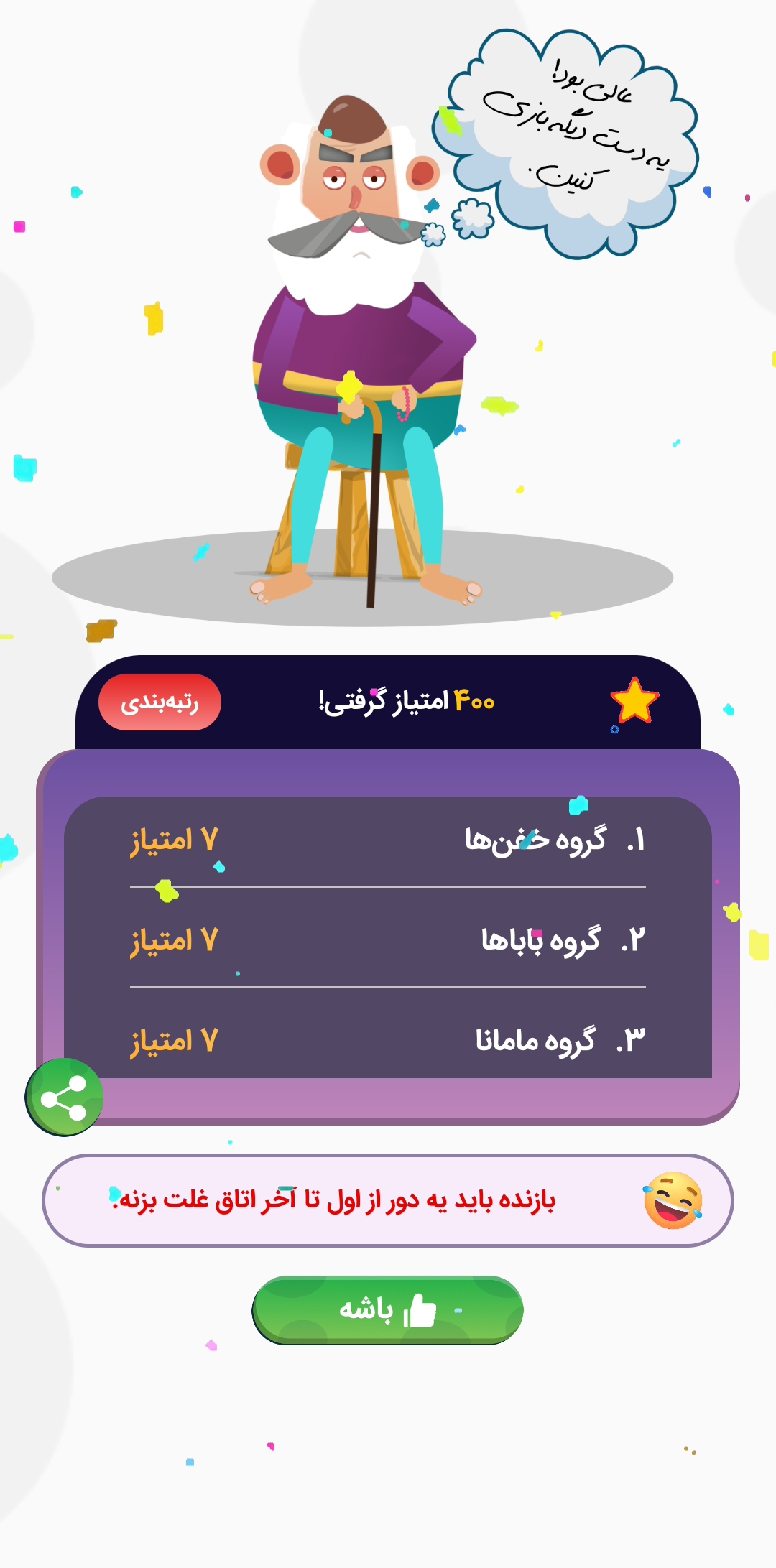 اینجا میتونید تصویر برخی از صفحات اپلیکیشن رو ببینید. ما سعی کردیم روند بازی خیلی ساده و روان باشه. ظاهر شاد و جذاب بازی میتونه گرما رو به دورهمی های شما بیاره.